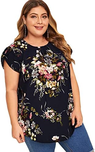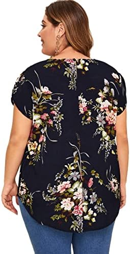 Floerns Women’s Plus Size Floral Print Short Sleeve Summer Blouse Top Shirt