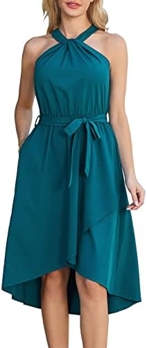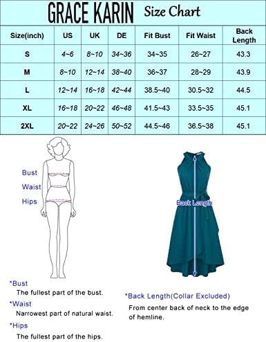 【Unique Features】This Grace Karin dresses features halter neck, sleeveless, high low dress, irregular overlapping hem, midi dress with belt(detachable), pocket dress, a line dress, keyhole back with 2 buttons, knee length dress, elastic waist dress, solid color.