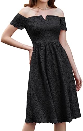 【Fashion】Lace Dress for Women, the off shoulder design makes you more elegant and attractive, dignified lace cocktail dress makes you stand out from the crowd! The elastic waist and full soft lining makes you super comfortable when wearing.