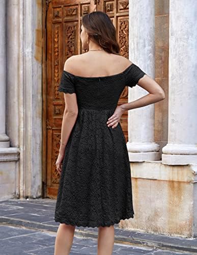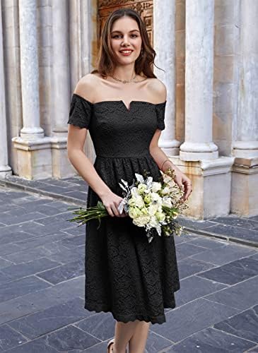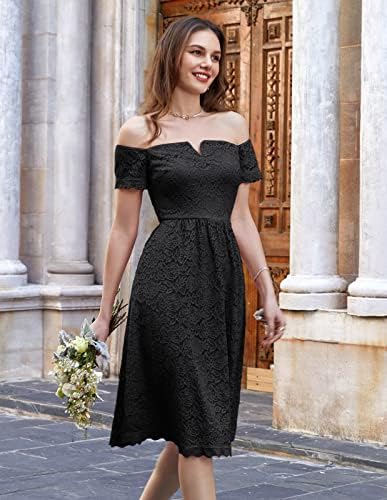 【Feature】This Lace Wedding Guest Dress for Women Features classic Lace and Off Shoulder design, Stretchy, Short Sleeve, Elastic Waist, Hidden Zip(Back), Not See-Through, A-line, fashionable and charming.