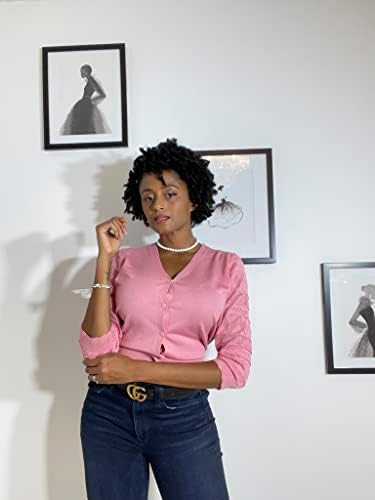 【Designs】Women’s solid elegant cardigan sweater, we added some elements that are very popular now, the sleeves are hollowed out in geometric patterns, make the whole cardigan simple but not ordinary.