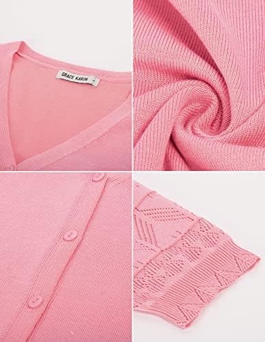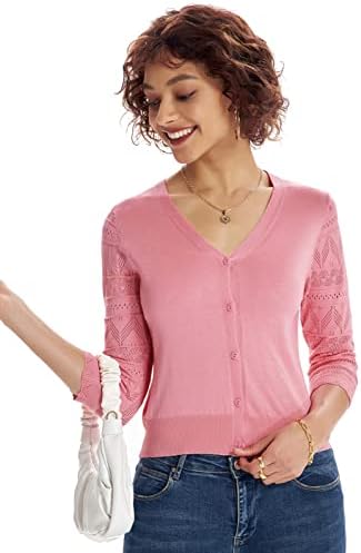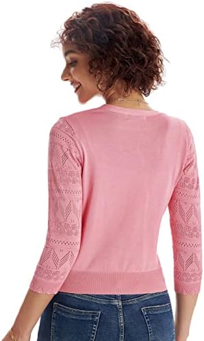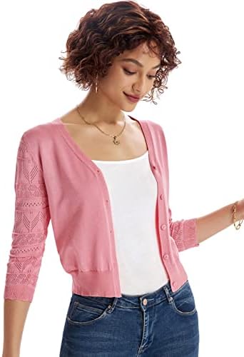 【Features】Hollow out 3/4 sleeve , V neck, button-down, open front, cropped cardigan, classic solid color, soft and cozy fabric, breathable, stretchy, lightweight, good quality and washes up well.