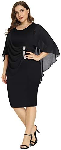 🔥Material: 95%Polyester+5%Spandex, Hanna Nikole’s plus size pencil dress is made of quality chiffon capelet and comforty fabric, smoothes you out and offers you comfort, stretchy, comfortable and lightweight to wear.