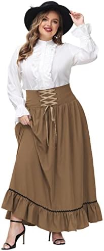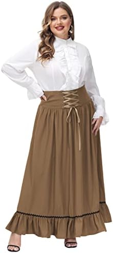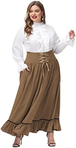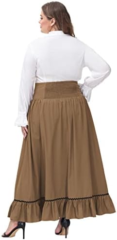 🍒Features: Plus size renaissance skirt features with high waist, lace up in the front, elastic smocked back, an a-line silhouette, and ruffles hemlinne.
