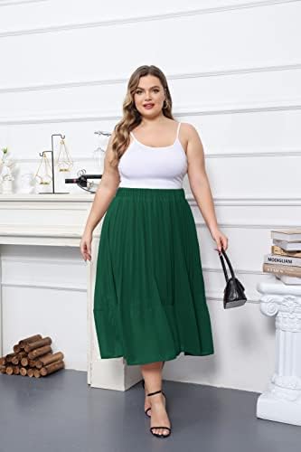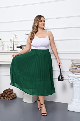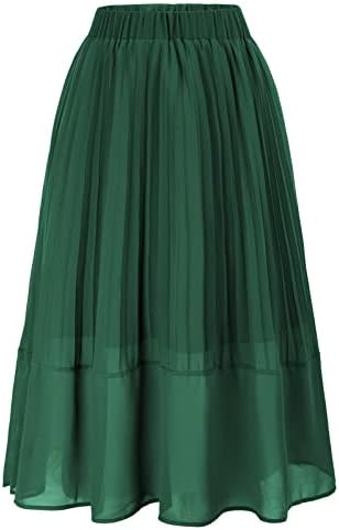 [ High Waist Skirt Feature ] A-line style, high waist design, elastic band, pleated flowy swing,semi-sheer double layer, tiered skirt dress, solid color, vintage retro length, long maxi ankle knee-length, bridesmaid skirt, chiffon material, tummy control midi skirt, fairy Skirts, plus size casual skirts, party elegant skirts