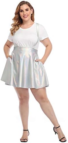Rock this SEXY PLUS SIZE PINAFORE SKIRT at the club, your next music festival, rave, Mardi Gras, 80s outfit costume party, disco dance party, or make the best iridescent alien costumes for Halloween!