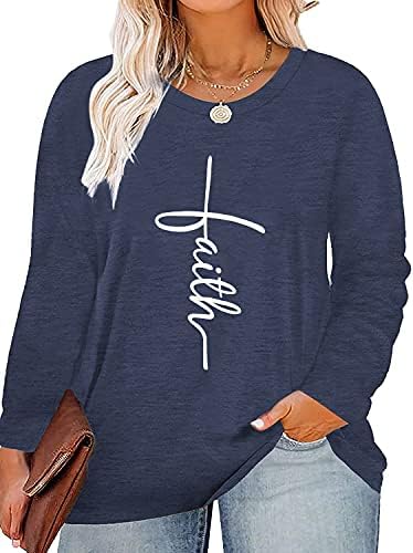 Plus Size Women Tops Feature — plus size Christian shirts for women, long sleeve shirts for women plus size, cross faith graphic t-shirts, letter print inspirational clothes, crewneck casual tee blouse