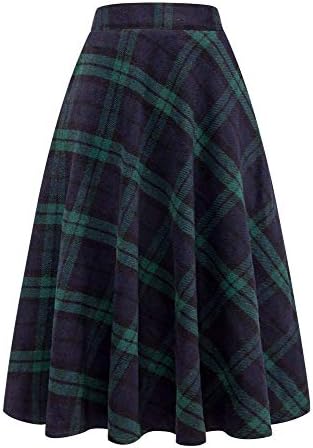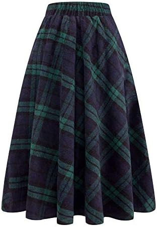 IDEALSANXUN women’s fall winter wool high waist A-line plaid tartan maxi long skirt.