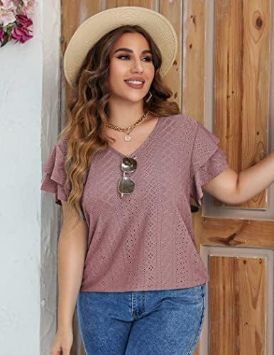 【Feature】:This v neck tops for women with Cute Ruffle Sleeves,Unique Pointelle Design,Loose Fit,Solid Color and Hollow Out. Make you stand out in the crowd.