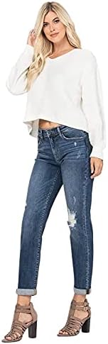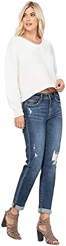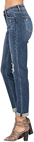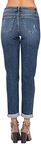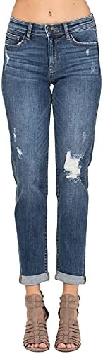 These Judy Blue Cuffed Destroyed Slim Fit Jeans. These dark wash, destroyed jeans are so soft! Wear them cuffed or uncuffed to fit your mood that day. Throw these jeans on with your favorite top and shoes for an awesome outfit! Distressing may vary. Featuring: Midrise, slim fit boyfriend, distressed, zip fly button closure, 5 constructional pockets, front fading and whiskering
