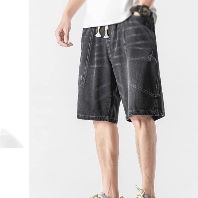 KJHD Men’s Printed Knee Length Loose Plus Size Cropped Pants Plus Size Men’s Summer Denim Shorts (Color : A, Size : L code)
