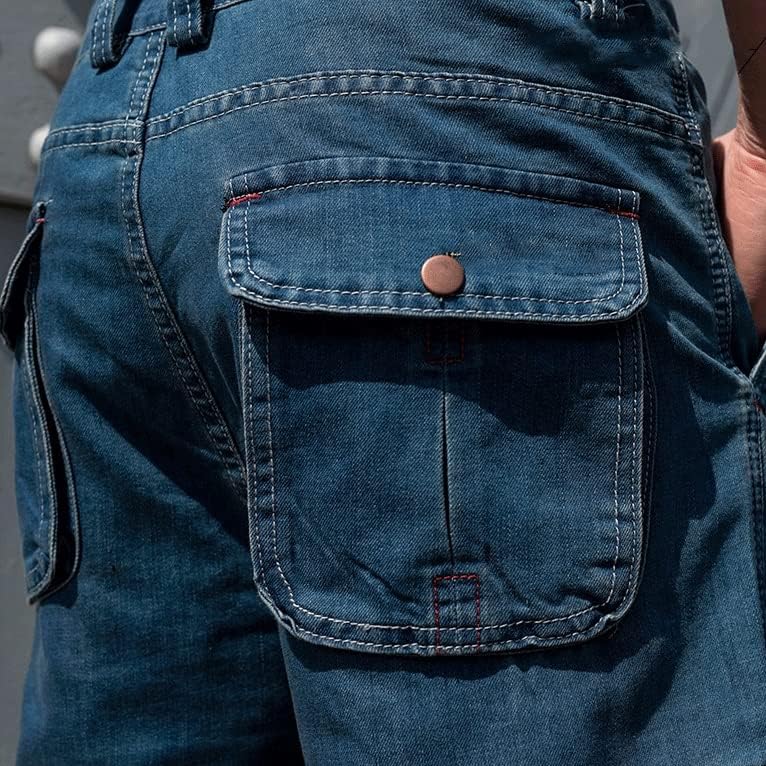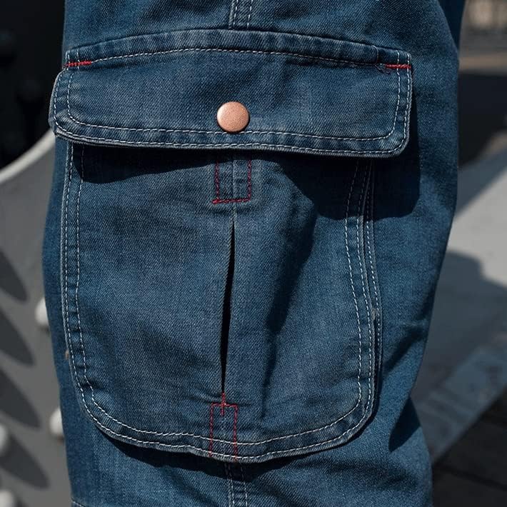 KJHD Summer Denim Overalls Cropped Pants Big Pocket Men’s Shorts Hip Hop Loose Plus Size Denim Short Men (Color : A, Size : 46)