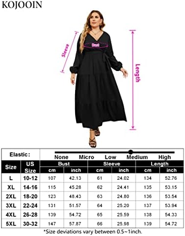 KOJOOIN Women Plus Size V Neck Wrap Maxi Dress-Solid color and floral printed