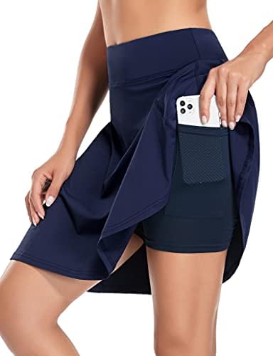🎾With 4 Pockets►4 pockets in this golf skirt with shorts can play different roles. Pockets on the leg to fit tennis balls, 2 side pockets secure to store essentials like phone,card etc.Another waist hidden pocket convenience for you to hold keys, coins and other necessary.