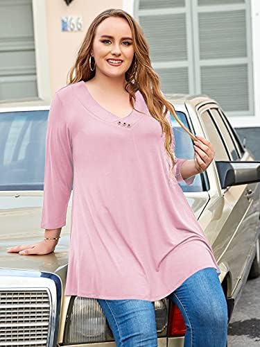 Plus Size 3/4 Sleeve Tops For Women – The three quarter sleeves tops and blouses, loose waist women plus size clothing, long flowy hem hides belly and hips perfectly, creating particular slimming effect. Nice big womens clothes plus size women’s tunics in cool season or as maternity tops.