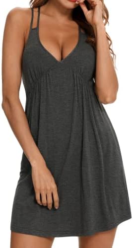 ♥Features: Sexy Pajamas for Women, Nightgowns for Women, Full Slip Dress, Comfy Sleepwear, Lingerie Babydoll Dress; Featured with double straps design the cross-line of back, sexy deep V-neck, unique curve hem, pleats detailed tailor front, A-line silhouette fitting, chic hip length