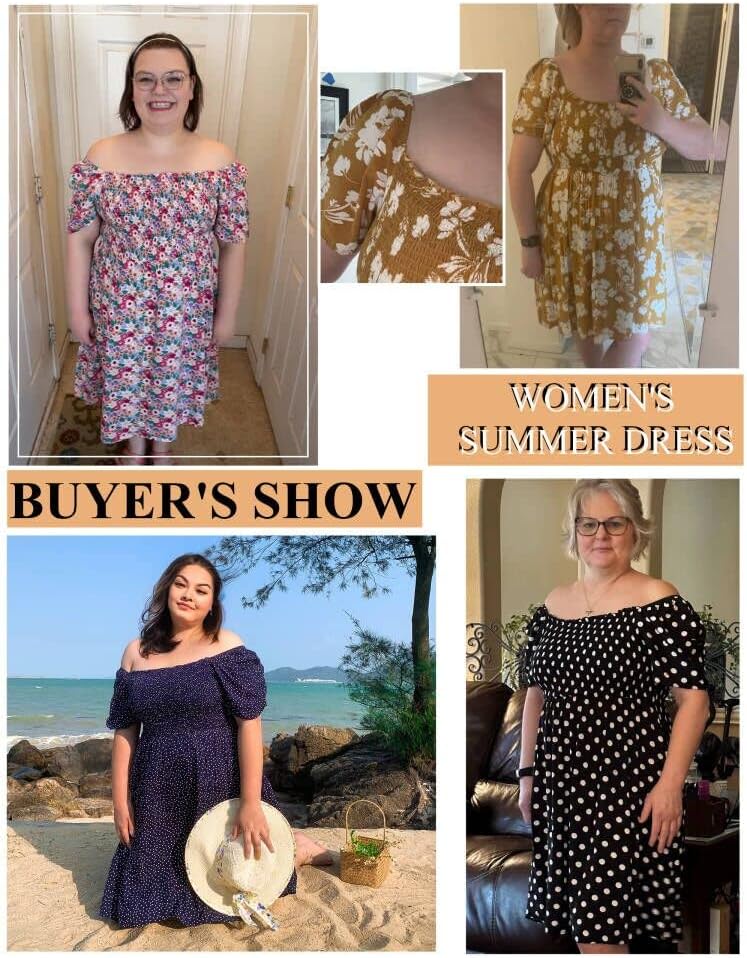 Off-shoulder summer dresses: The bohemian floral printed plus size dress comes with the elastic square neck that can be worn off the shoulder;