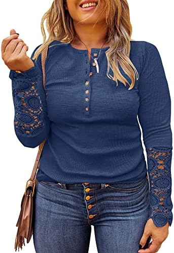 Limerose Plus Size Tunic Tops Long Sleeve Button Down Casual Blouse Ribbed Shirt