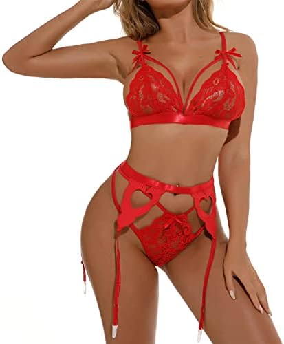 Lace Lingerie Set for Women: MENDENG Sexy Lingerie Set Feature with Cute Heart Embroidery and Adjustable Straps Design, Bra and Panty with Garter Belt 3 Pieces Set Lingerie Exquisite Lace are Soft and Highly Elastic, Garter Set Lingerie for Women Decorated with Ribbons and Bows of the Same Color, Women’s Exotic Lingerie Sets Heart-Shaped Cut-Out Panels Will Catch Your Partner’s Eye on and Leave Sweet and Romantic Memories for Him, Highly Recommend You Have These Lingerie Sets.