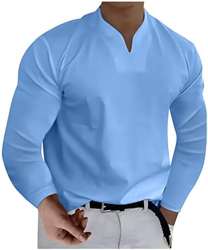 Mens Casual Dress Shirt Men’s Casual Solid Color V-Neck Gentleman’s Business Long Sleeve T-Shirt
