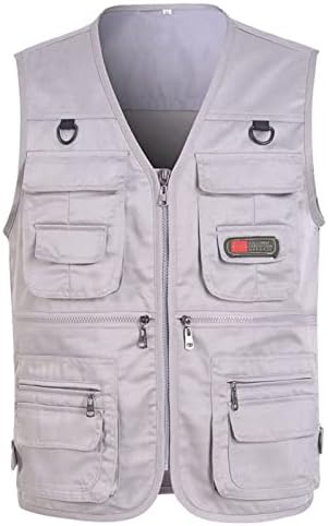 Men’s Casual Outdoor Work Fishing Travel Photo Cargo Vest Jacket Multi Pockets T Shirts Mens