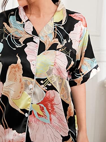 Feature: Plus Size Pajama Set, 2 Pieces, Short Sleeve, Button Down Shirt and Pants Set, Floral Print, Contrast Binding, Elegant