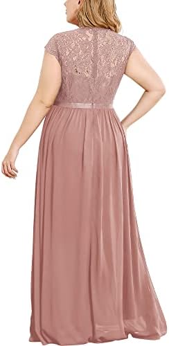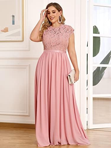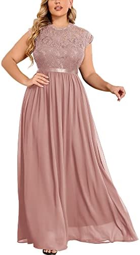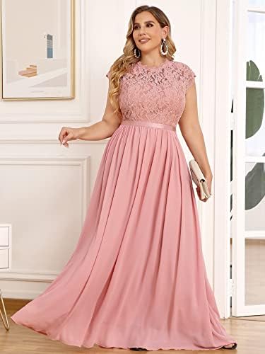 Lace Contrast Chiffon Style, Zipper On The Back, Long Dress For Plus Size Women.