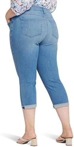 Get ready for your evening date by wearing the NYDJ Petite Plus Size Chloe Capris Hollywood Waistband & Cuff in Mesmerize jeans.