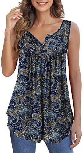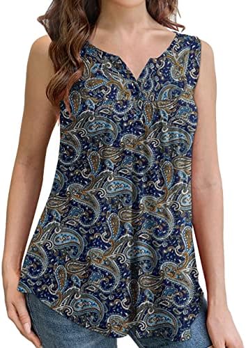 This blouses for women design: Tunics, sleeveless, Floral printed, flowy, v neck with buttons, pleated in the front and back