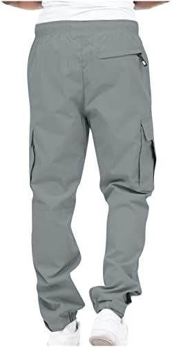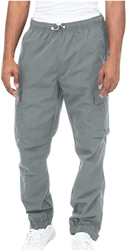 Ozmmyan Cargo Pants for Men Solid Casual Multiple Pockets Elastic Outdoor Fitness Straight Type Long Cargo Pants Trousers