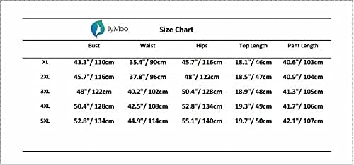 4XL Bust: 44.9″/ 114cm; Waist: 40.2″/ 102cm; Hips: 50.4″/ 128cm; Top Length: 18.1″/ 46cm; Pant Length: 42.9″/ 109cm;
