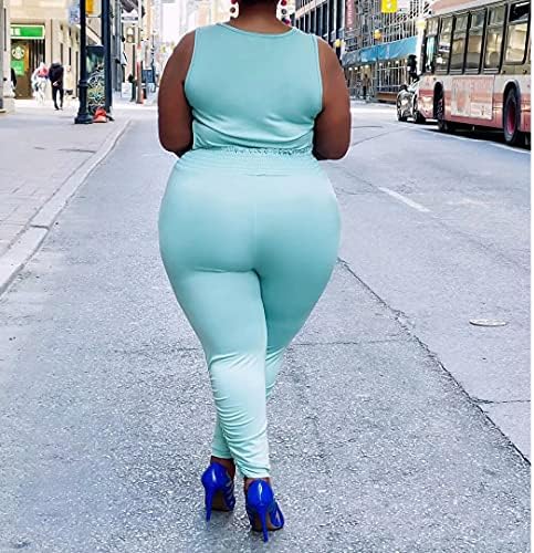 Women’s Sexy Plus Size 2 Piece Outfits Sleeveless Racer Back Tank Crop Top Pants Set Club Jumpsuits