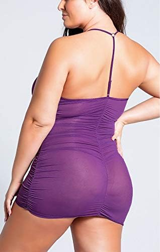 Plus Size Sheer Stretch Mesh Babydoll Dress Zipper Shirring Halter Chemise Curvy Sexy Lingerie for Women