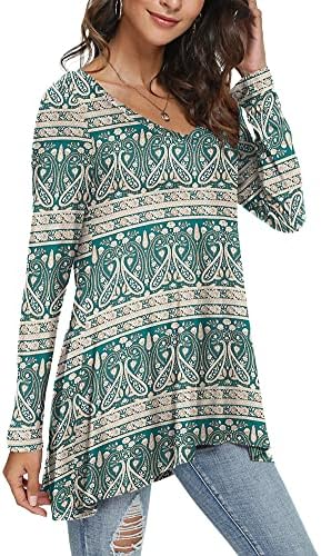 POPYOUNG Women’s Fall Long Sleeve Tunic Tops for Leggings V-Neck Casual Blouse T-Shirt