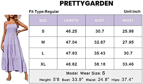 PRETTYGARDEN Women’s Summer Maxi Dress Casual Boho Sleeveless Spaghetti Strap Smocked Tiered Long Beach Sun Dresses