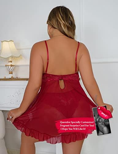 Ideal Gift: The plus size lace nightdress sleepwear. A wonderful choice for honeymoon, boudoir shoot, Valentine’s Day, Christmas gift, birthday gift and Anniversary. The sheer lace nightgown will give out the sweet scent because we have put a Queenfox fragrant card inside the package, and it helps to spice up your sweet night!