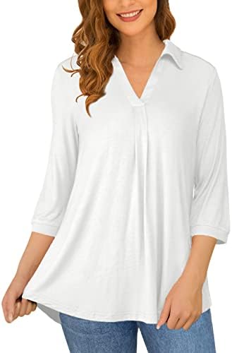 REDHOTYPE Womens Plus size Tops 3/4 Sleeve Shirts Collared V Neck Blouses Casual Work Tunic Tops