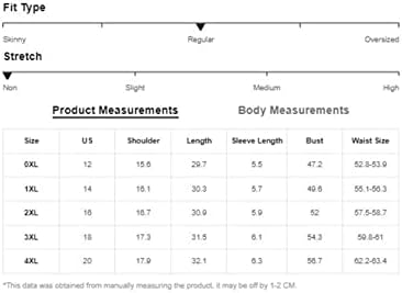 Size Chart: Large Plus——Shoulder:15.6″,Length:29.7″,Sleeve Length:5.5″,Bust:47.2″,Waist Size:52.8-53.9″/ X-Large Plus——Shoulder:16.1″,Length:30.3″,Sleeve Length:5.7″,Bust:49.6″,Waist Size:55.1-56.3″/ XX-Large Plus——Shoulder:16.7″,Length:30.9″,Sleeve Length:5.9″,Bust:52″,Waist Size:57.5-58.7″/ 3X-Large Plus——Shoulder:17.3″,Length:31.5″,Sleeve Length:6.1″,Bust:54.3″,Waist Size:59.8-61″/ 4X-Large Plus——Shoulder:17.9″,Length:32.1″,Sleeve Length:6.3″,Bust:56.7″,Waist Size:62.2-63.4″/