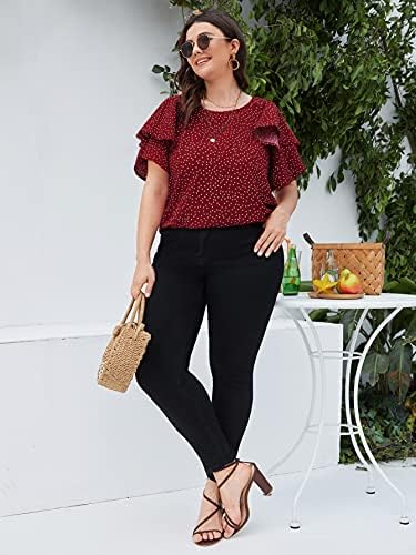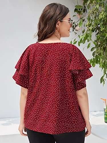 Romwe Plus Size Polka Dots Ruffle Short Sleeve Round Neck Blouses