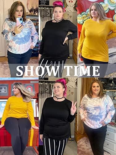 Plus size tops for women feature tie dye, striped, colorblock, camouflage, solid color, star printed