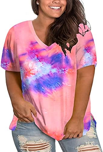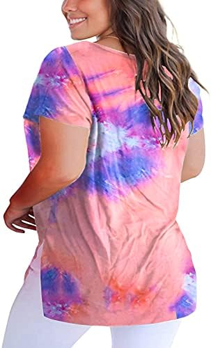 ROSRISS Womens Plus Size Short Sleeve T Shirt V Neck High Low Tops Blouse Tunics with Side Split