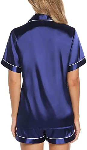 Unique Design —— Silk Satin Pajamas Set is featuring classic notched collar with chest pocket, Button Down Top that is easy get on and off without mess up your makeup or hairdo, also is perfect for pregnancy pajamas breast feeding in the night ; pant features drawstring elastic waist to make relaxing as comfortable as possible.