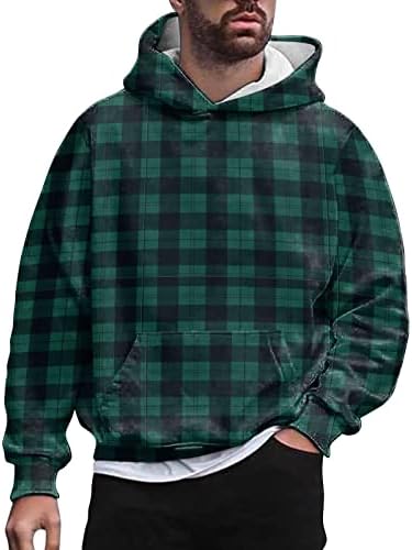 Hoodies For Men Graphic Design,Vintage Plaid Lightweight Oversized Pullover,Loose Drawstring Hooded Sweatshirt Tops