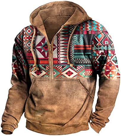 Hoodies For Men With Designs,Aztec Western Ethnic Print Sweatshirt,Half Zip Long Sleeve Loose Hooded Pullover Tops Hoodies For Men Graphic Design,Half Zip Aztec Print Vintage Sweatshirt,Western Ethnic Loose Long Sleeve Pullover Top