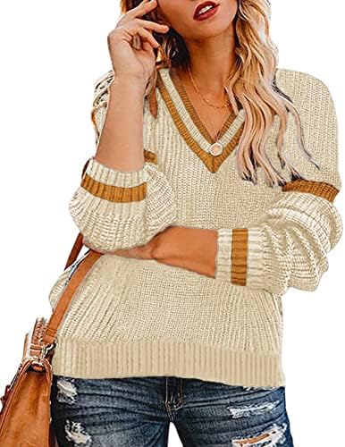 【Fashion Design】: You will look so cute with this plus size pullover sweater, oversized style for women that features relaxed v neck, color block stripes, loose fit sweaters, casual basic pullovers for women.