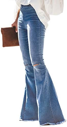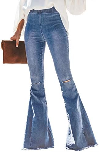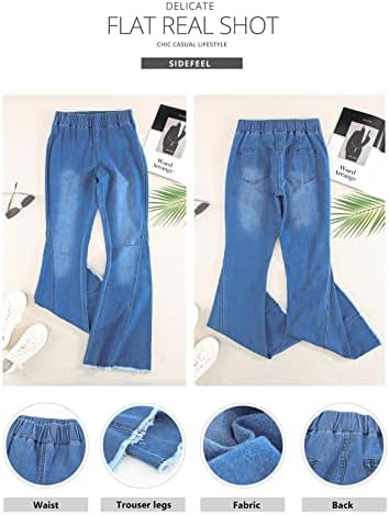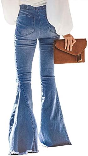 This flared jeans is made of 75% cotton, 23% polyester, 2% spandex, this material is lightweight and cozy. Please refer to the following information for size: Small size= US 8,Medium size= US 10, Large size= US 12 ,X-Large size= US 16,XX-Large size= US 18