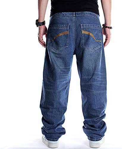 SMIOPDES Men’s Baggy Jeans Loose Fit Blue Skateboard Denim Pants – Classic Plain Straight Relaxed Fit Jeans