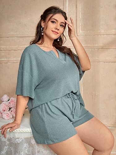 Feature: Notched neck, half sleeve, waffle knit, tie front, shorts sets, womens sleepwear, fashionable