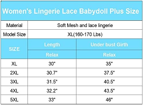 PREMIUM MATERIAL: Plus Size women’s doll underwear set, made of soft lace and mesh, transparent soft material, comfortable and breathable.The lace lingerie for women has great elasticity to any shape.
