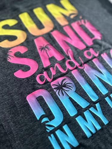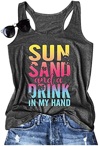 Sun Sand and A Drink in My Hand Tank Tops Womens Summer Beach Graphic Sleeveless T Shirt Cute Country Vacation Tank Cami